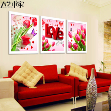 钻石绣粘钻钻石十字绣贴钻新款郁金香花卉钻石画三联满钻客厅卧室