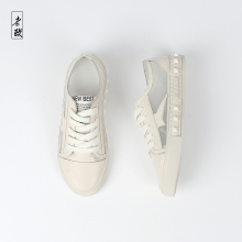 老欧定制小清新真皮镂空网纱小白鞋女夏星星铆钉平底休闲鞋女韩版