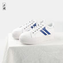 老欧自制 袁姗姗同款小白鞋女真皮系带休闲鞋厚底松糕鞋运动鞋