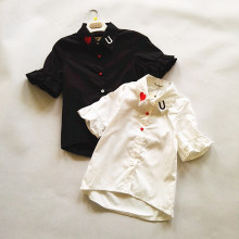 2017夏季新款母女亲子装短袖衬衫休闲卡通半截袖衬衣白色修身上衣