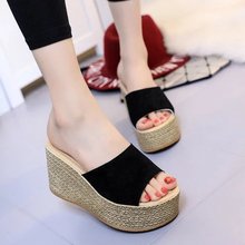 夏季休闲厚底凉拖黑色高跟坡跟松糕底鱼嘴拖鞋泡沫女鞋子一字拖鞋