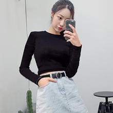2017春装新款露脐长袖短款韩版高腰女T恤秋冬装漏肚脐打底衫上衣