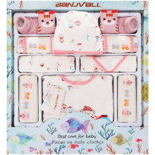 班杰威尔春夏纯棉新生儿衣服套装初生婴儿礼盒满月宝宝服装用品