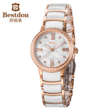 瑞士邦顿品牌名表时尚手表女潮流腕表时装韩版陶瓷表白色镶钻s