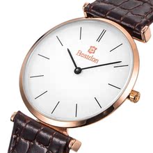 正品邦顿瑞士超薄真皮带男表 韩版时尚潮流 防水石英情侣手表男s