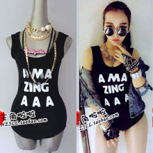 热卖欧美夜店酒吧爵士DJ舞台装女ds演出服爵士字母黑色三角连体衣