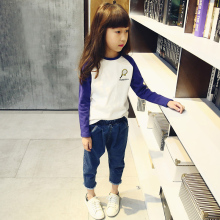 女童打底衫2017新款秋装中大童韩版时尚数字插肩上衣圆领长袖T恤