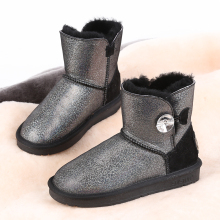 SKISTUA防水珠光布纹短筒纽扣羊皮羊毛雪地靴防滑冬季短靴女