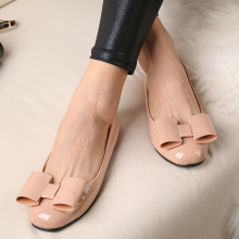 skistua春季新款 韩版豆豆底蝴蝶结浅口纯色漆皮方头鞋女单鞋