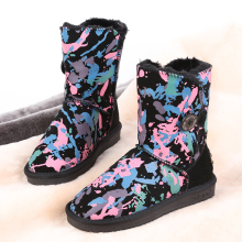 SKISTUA正品经典中筒纽扣涂鸦雪地靴 防滑保暖女靴毛毛靴