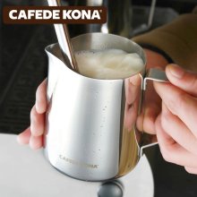 CAFEDE KONA拉花杯带刻度尖嘴不锈钢加厚奶泡缸器具花式咖啡拉花
