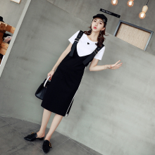 2017时尚女装新款两件套韩版宽松显瘦吊带裙T恤上衣套裙连衣裙 潮