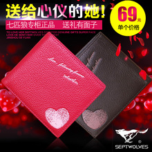 Septwolves/七匹狼情侣钱包 韩版男女士短款头层牛皮潮钱夹