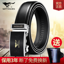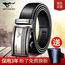 七匹狼皮带男士真皮中年头层牛皮内穿式自动扣商务少年青年腰带