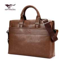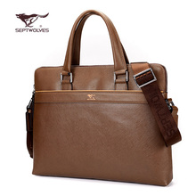 七匹狼男包商务牛皮包 单肩包斜挎包手提包横款 男士真皮男公文包
