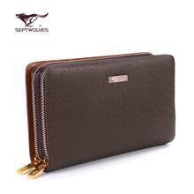 七匹狼手包正品 男士商务手抓包休闲长款钱包真牛皮男包包手拿包
