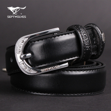 七匹狼皮带女士真皮正品 时尚休闲牛皮细腰带 韩版针扣潮装饰裤带