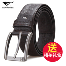 七匹狼皮带男真皮针扣纯头层牛皮裤带中年青年少年男士商务腰带