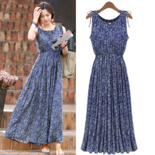 波西米亚无袖碎花度假沙滩连衣裙女装夏天大码吊带大摆拖地长裙