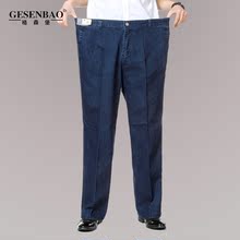 格森堡新款中老年男装牛仔裤高腰男裤子直筒裤加肥加大宽松长裤子