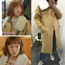 2017冬季新款举重妖精金福珠明星同款韩版浅驼色羊羔毛中长款大衣