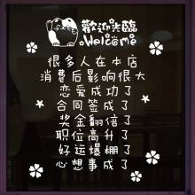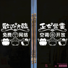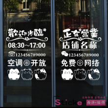 招财猫欢迎光临空调开放时间店名电话微信订做店铺玻璃门墙贴纸