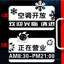 空调开放正在营业美发咖啡店铺玻璃门贴纸公司移门冷气标示墙贴画