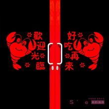 小龙虾玻璃门墙贴 创意火锅餐厅饭店烧烤酒店橱窗装饰背景墙贴纸