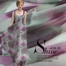 水墨紫韵●真丝褶皱顺纡乔面料连衣长裙服装桑蚕丝布料宽幅丝绸布