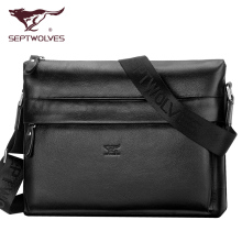 七匹狼男包商务牛皮包横款男士真皮男单肩包公文包电脑包
