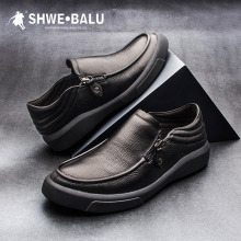 盛威保罗男鞋正品秋季新款男士套脚休闲鞋乐福鞋真皮圆头舒适透