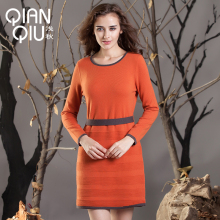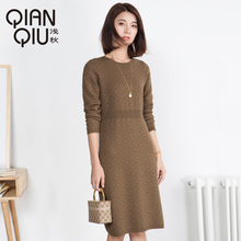 浅秋正品春季新款韩版淑女修身圆领中长款羊毛针织连衣裙