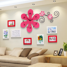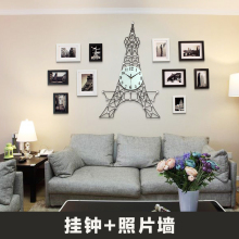现代简约时尚客厅挂钟北欧照片墙创意个性DIY钟表静音石英钟挂表