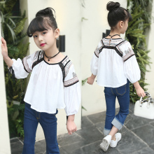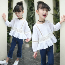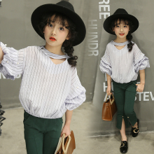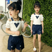 童装女童套装中大童2017新款夏装韩版女孩衣服儿童时尚露肩两件套