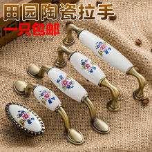 红蓝花青古欧式抽屉拉手 现代简约橱柜陶瓷拉手仿古田园柜子把手