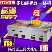 艾拓扒炉炸炉一体机 商用手抓饼机器 燃气铁板烧设备油炸锅关东煮