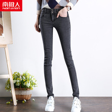 南极人烟灰色牛仔裤女高腰长裤小脚裤黑色紧身显瘦韩版铅笔女裤子