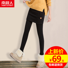 南极人加绒假两件裙裤打底裤女带裙加厚韩版显瘦外穿长裤小脚女裤