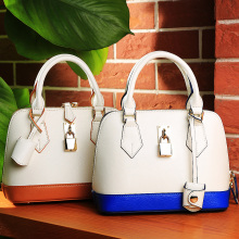丹蒂雅新款女包牛皮拼色贝壳包优雅撞色时尚手提单肩包1532