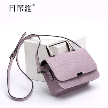 丹蒂雅包包新款时尚鳄鱼纹女包小方包斜挎包牛皮单肩迷你小包