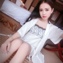 2017春夏季蕾丝睡衣睡袍两件套装少女士性感吊带睡裙带胸垫家居服