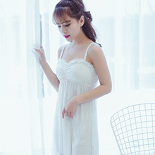 薄款蕾丝绸带胸垫睡衣女夏天睡裙性感女士抹胸吊带睡裙清新家居服