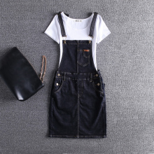 欧洲站2016春夏新款女装牛仔裙韩版水洗做旧拼接显瘦牛仔背带裙潮