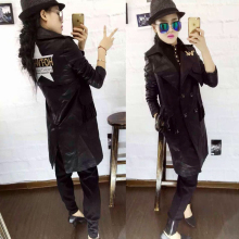 2016秋冬新款女士中长款皮衣外套韩版时尚流苏PU皮风衣五角星显瘦