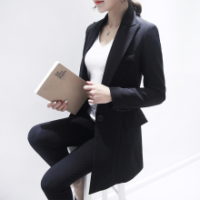 春秋韩版小西装外套女黑色中长款修身长袖休闲小西服秋季女士上衣