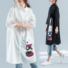 2017夏季新款韩版中长款宽松大码印花衬衫女七分袖时尚百搭衬衫裙