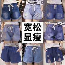 松紧腰牛仔短裤女夏装宽松阔腿加肥加大码女装200斤胖mm显瘦裤子