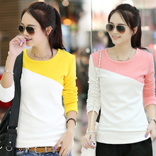春秋季长袖T恤女上衣韩版少女体恤套头拼接大码打底衫女学生衣服