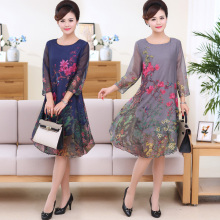 中年连衣裙春款2017新款妈妈短袖夏天中老年人休闲时尚连衣裙女夏
