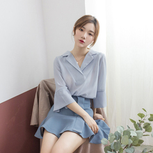 气质简约纯色西装领七分袖雪纺套头衬衫韩国东大门2017春夏